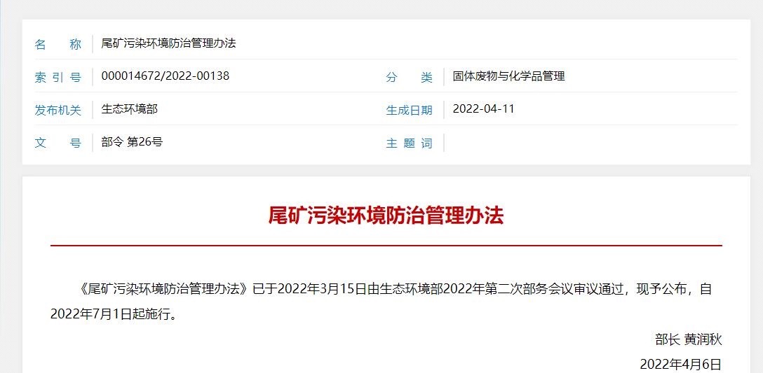 參考文件:尾礦污染環境防治管理辦法